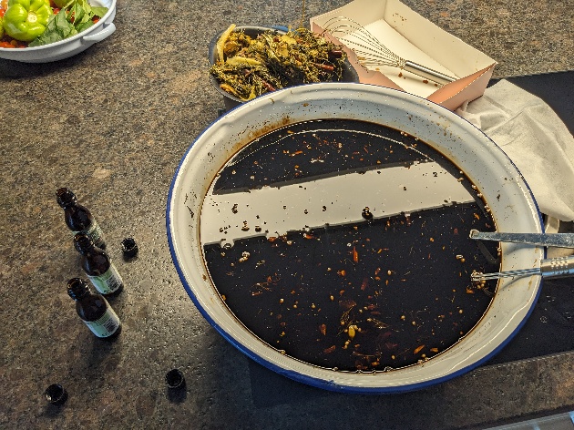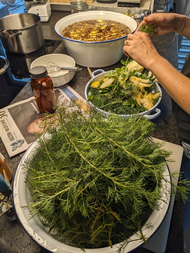 Let it soak for at least 48 hours and make sure that the herbs are covered with the liquid. Stir it up from time to time.