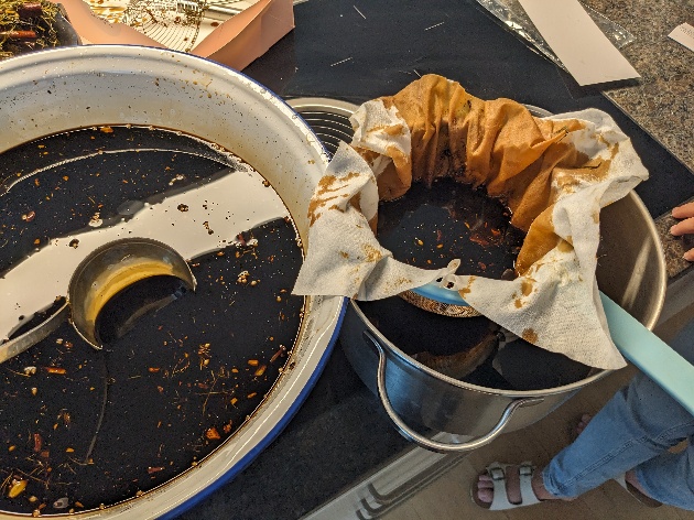 Remove the non-liquid parts and squeeze out the liquids before tossing them away.
